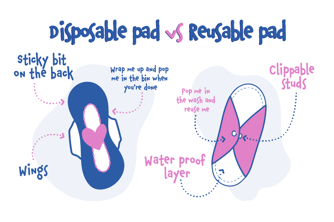 As we mentioned before, reusable pads are another option. Single-use, disposable pads, like the ones we described above, can be fairly expensive. Depending on your flow you can go through quite a lot of pads in a month, so it soon adds up. Also, disposable pads aren’t very eco-friendly, a lot of plastic is used to create disposable pads and they aren’t recyclable. There are some more eco brands out there, so if you prefer the idea of a disposable pad but want to be a bit kinder to the planet, it’s worth doing some research.